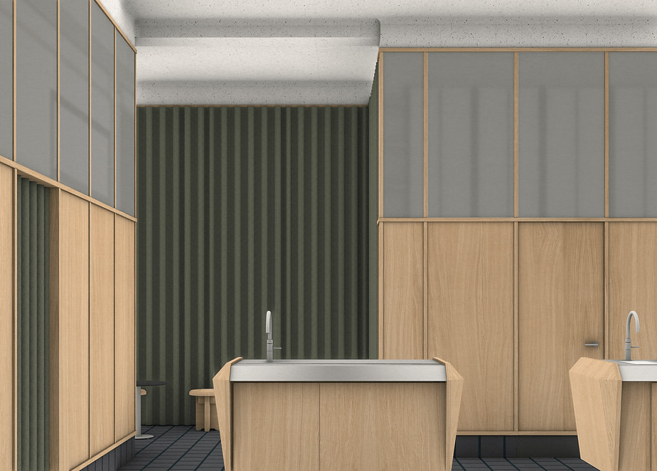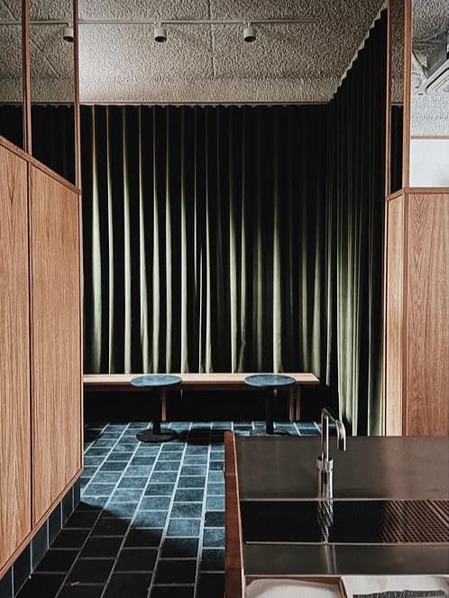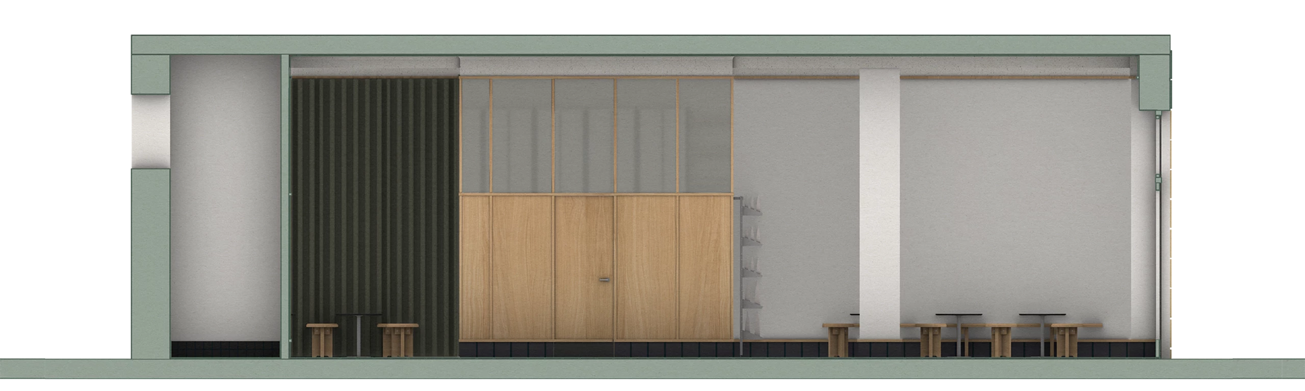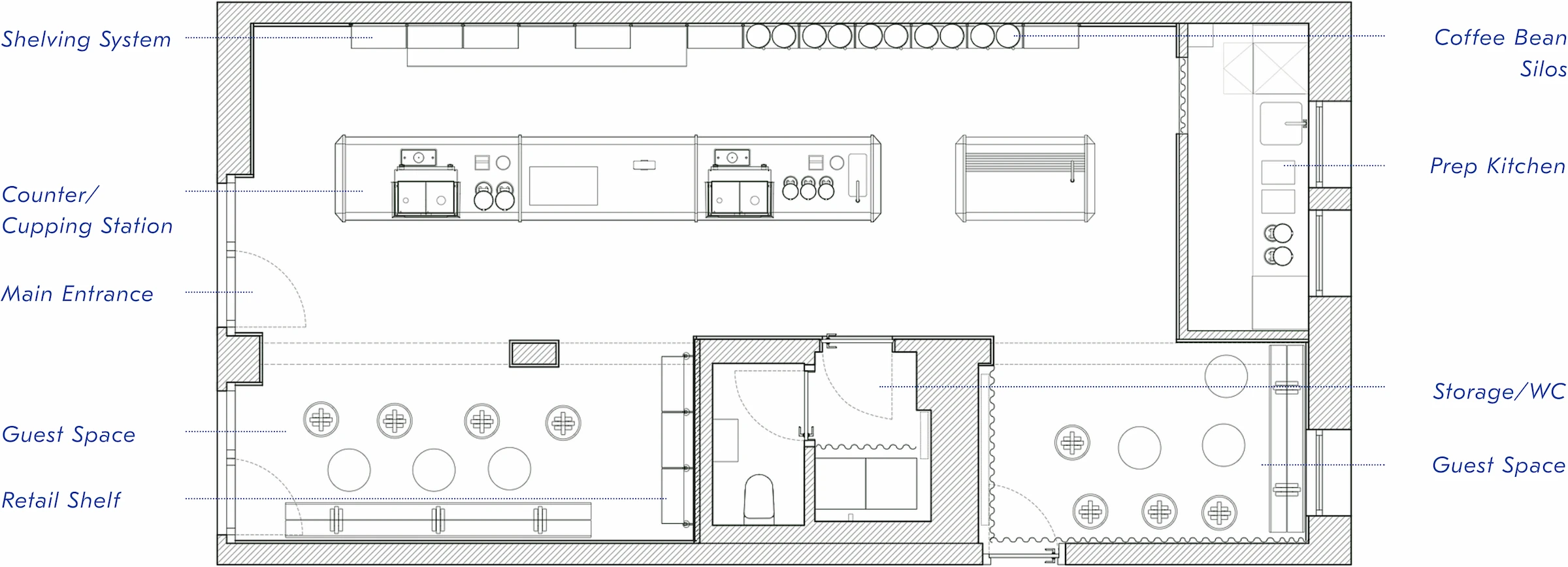 For the fourth Berlin branch of the Bonanza coffee roasting company, a small shop in Berlin-Mitte that previously had no gastronomic function was converted into a café. This made the new installation of all necessary connections of the counter, which only stands on cylinders, as well as a small preparation kitchen a special challenge.