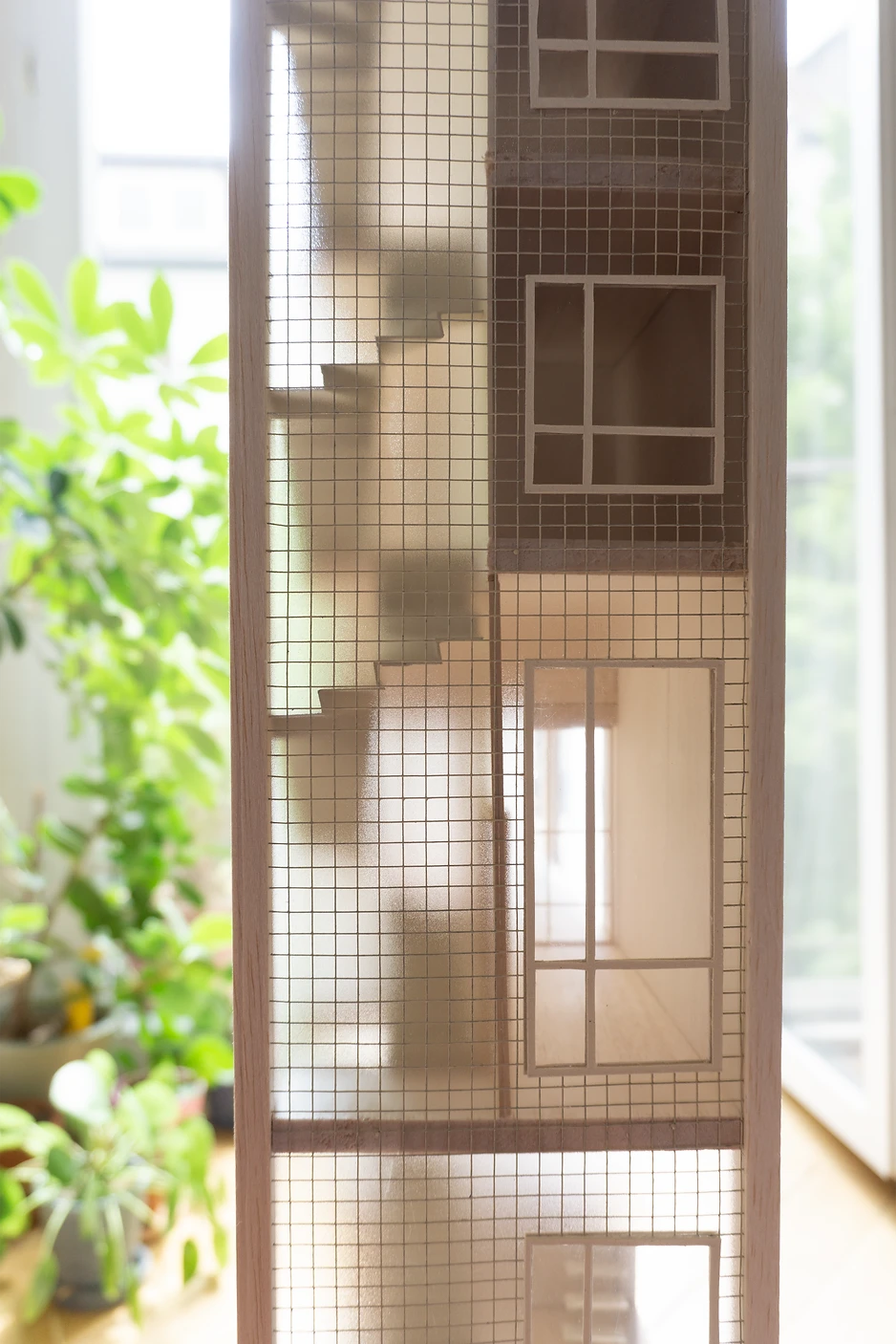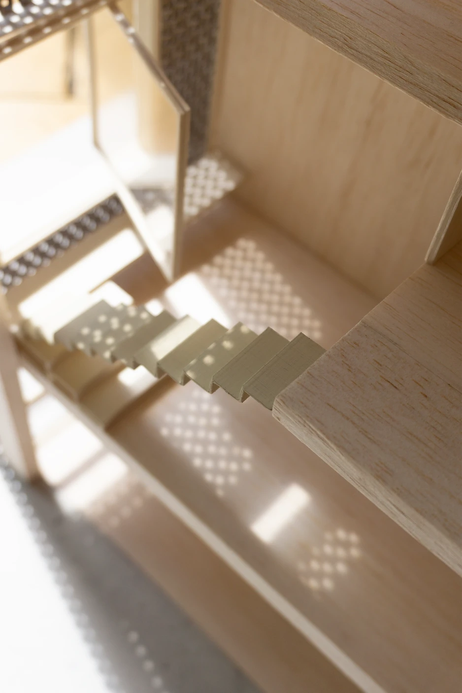 Model 1:25 | Balsa Wood, Finnboard, Plywood, 3D Printing Filament (Staircase), Plastic Foil, Wire Grid, Abachi Board, Basswood Sticks