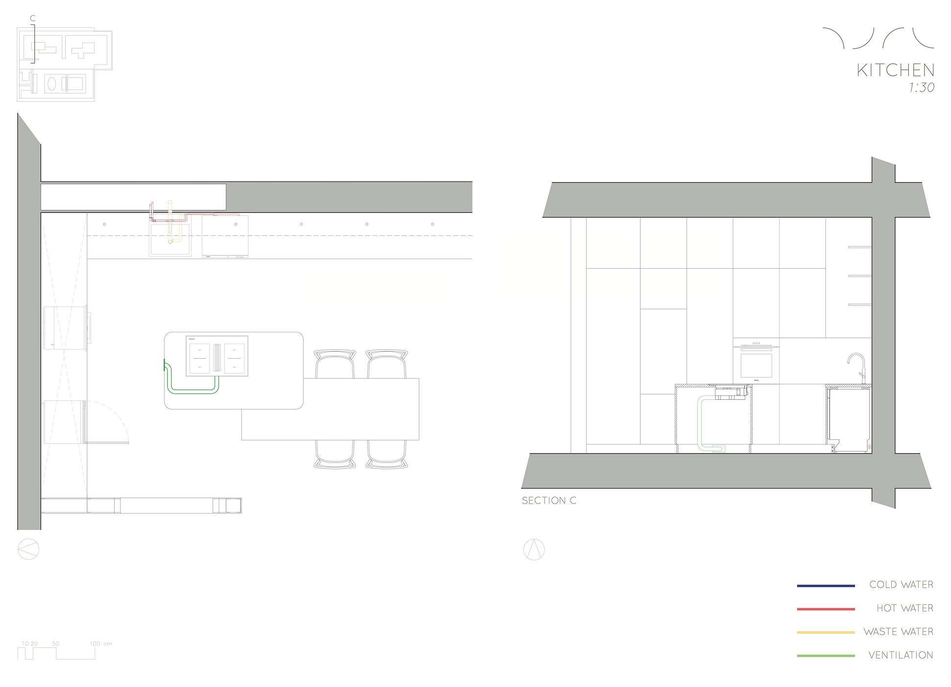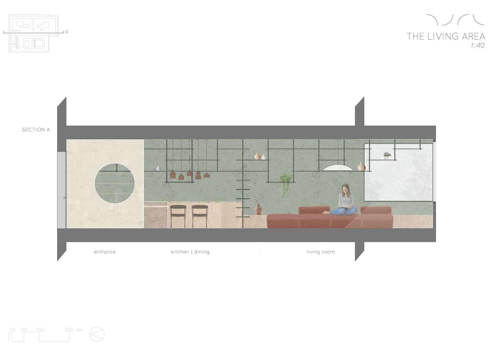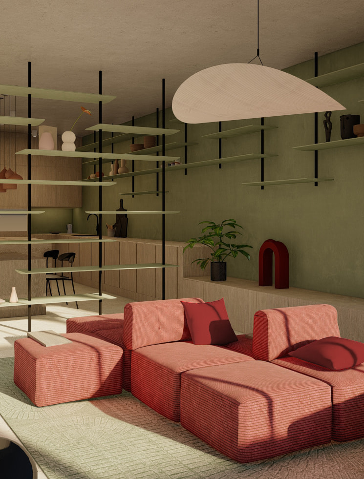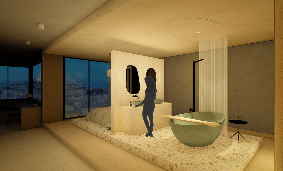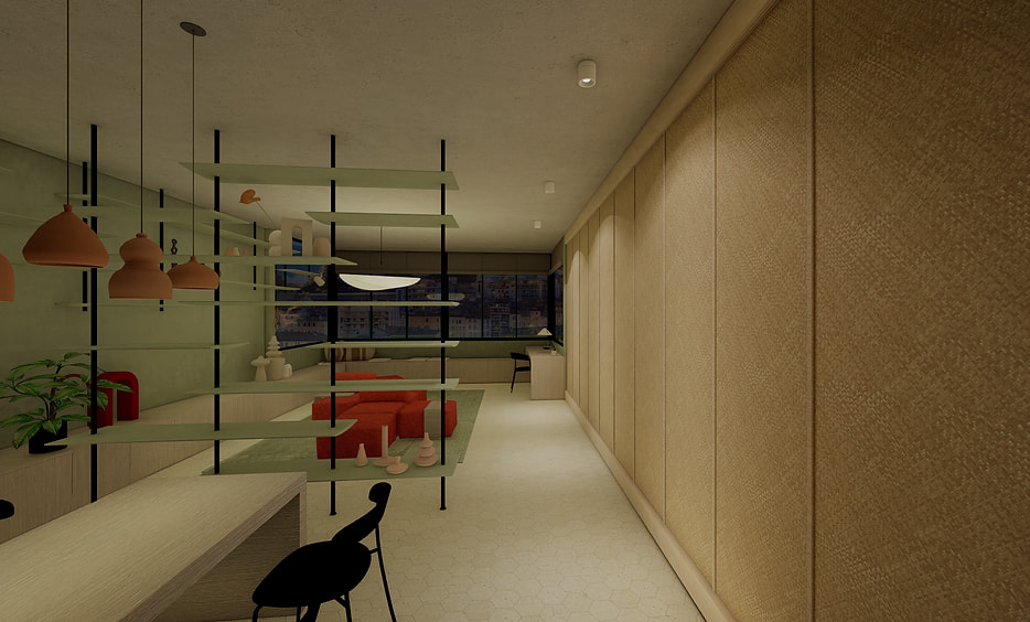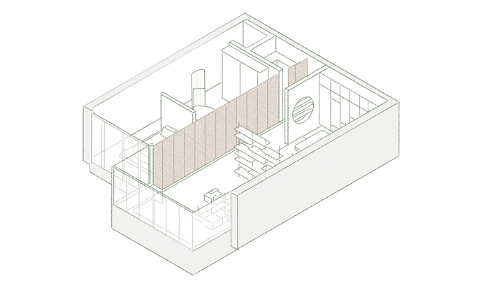 For this project, a studio dwelling was designed for a creative couple living in Marseille who collects ceramics and therefore needs a lot of shelving space.