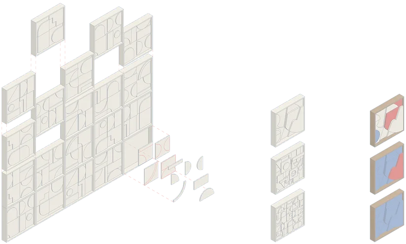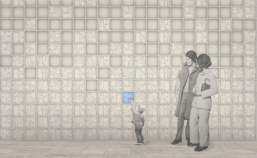 A physical metaphor for the layered and ever-changing memories: Everyone can participate in the design of the ornamental wall, perhaps as part of a workshop in the 'Werkstatt'. The artworks, set in removable frames, offer many creative, unobtrusive ways to leave a mark on the building.